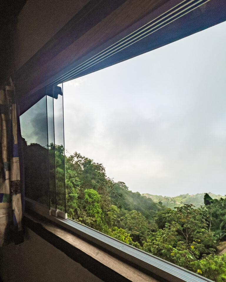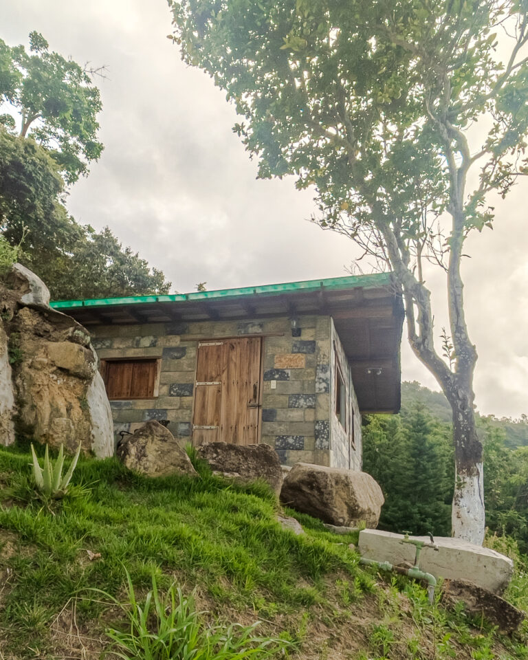 En su área externa, una mesa de jardín con sillas ofrece un lugar para compartir al aire libre. Muy cerca, una piedra de meditación bajo un árbol de naranja brinda un rincón especial para contemplar el mar Caribe, la montaña y el sonido de la naturaleza.