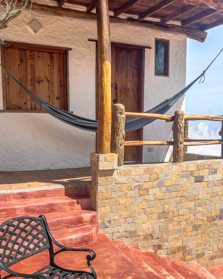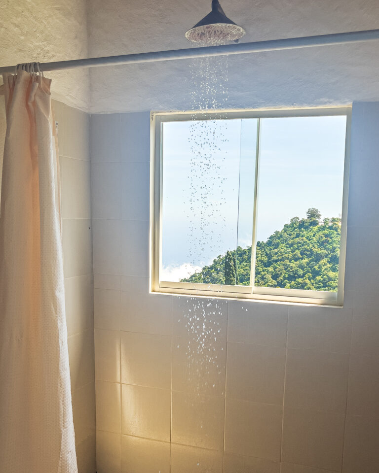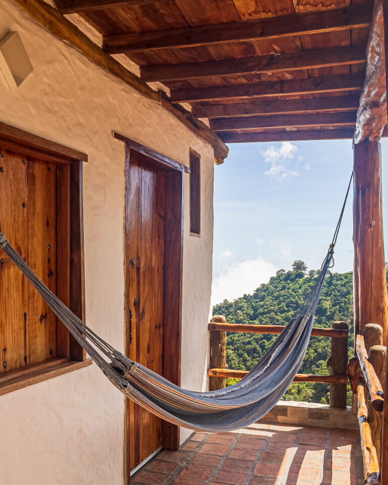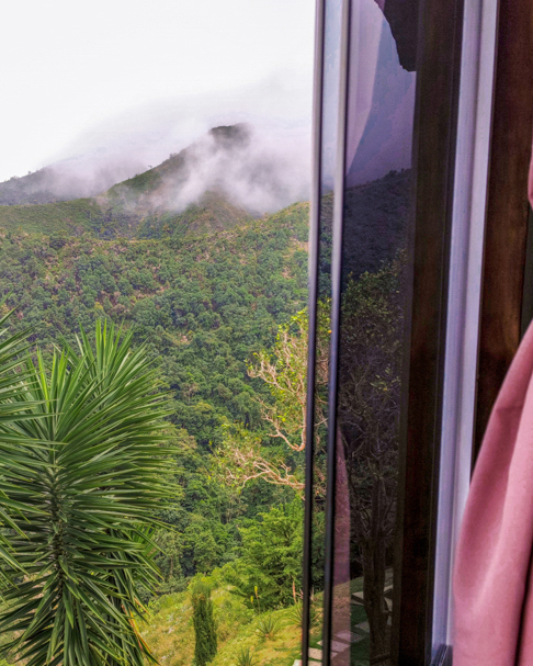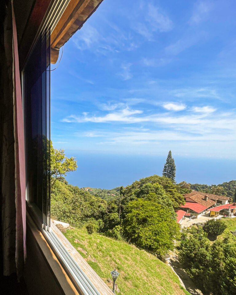 Su balcón privado, con hamaca, ofrece una vista impresionante al mar Caribe y la montaña. Afuera, junto a un imponente árbol de mandarinas, hay un espacio con mesa de jardín y sillas para disfrutar el atardecer, respirar aire fresco, escuchar el viento, el canto de los pájaros o el sonido lejano del río. Incluso los días nublados o lluviosos tienen un encanto especial desde este rincón.