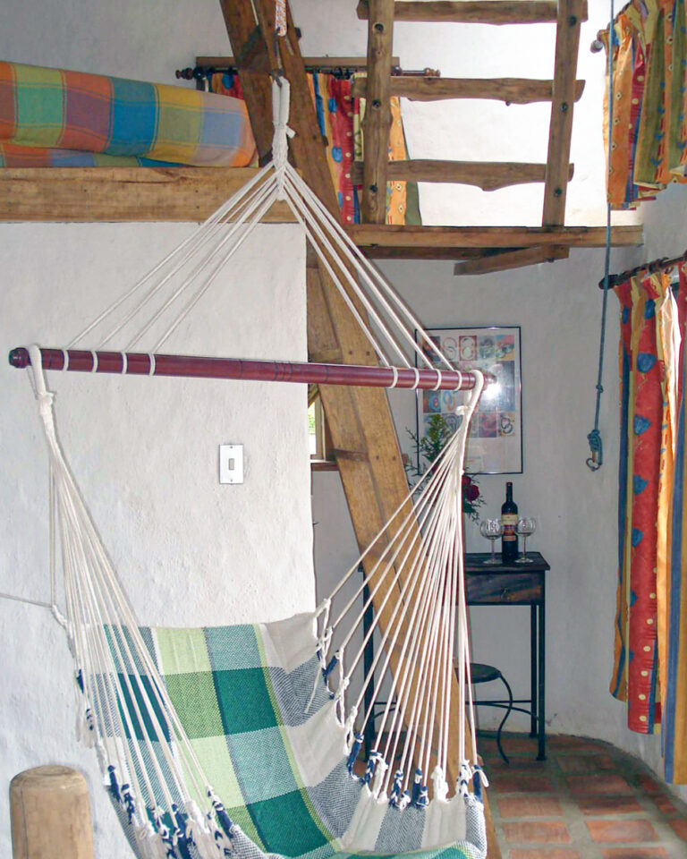 Aloja hasta cuatro personas, con una cama king en el nivel principal y una cama matrimonial en el segundo. Está equipada con baño privado, clóset, agua caliente, lencería, nevera ejecutiva, televisor con cable, conexión WiFi y una silla hamaca.