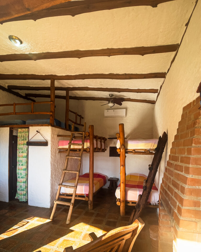 Tiene capacidad para ocho personas, distribuidas en dos habitaciones independientes. El cuarto principal cuenta con cama king, baño privado, clóset, televisor con cable y acceso directo a la terraza. El segundo ambiente está pensado para grupos o familias, con literas e individuales, su propio baño dividido en tres secciones para que varias personas puedan usarlo al mismo tiempo con comodidad y privacidad.