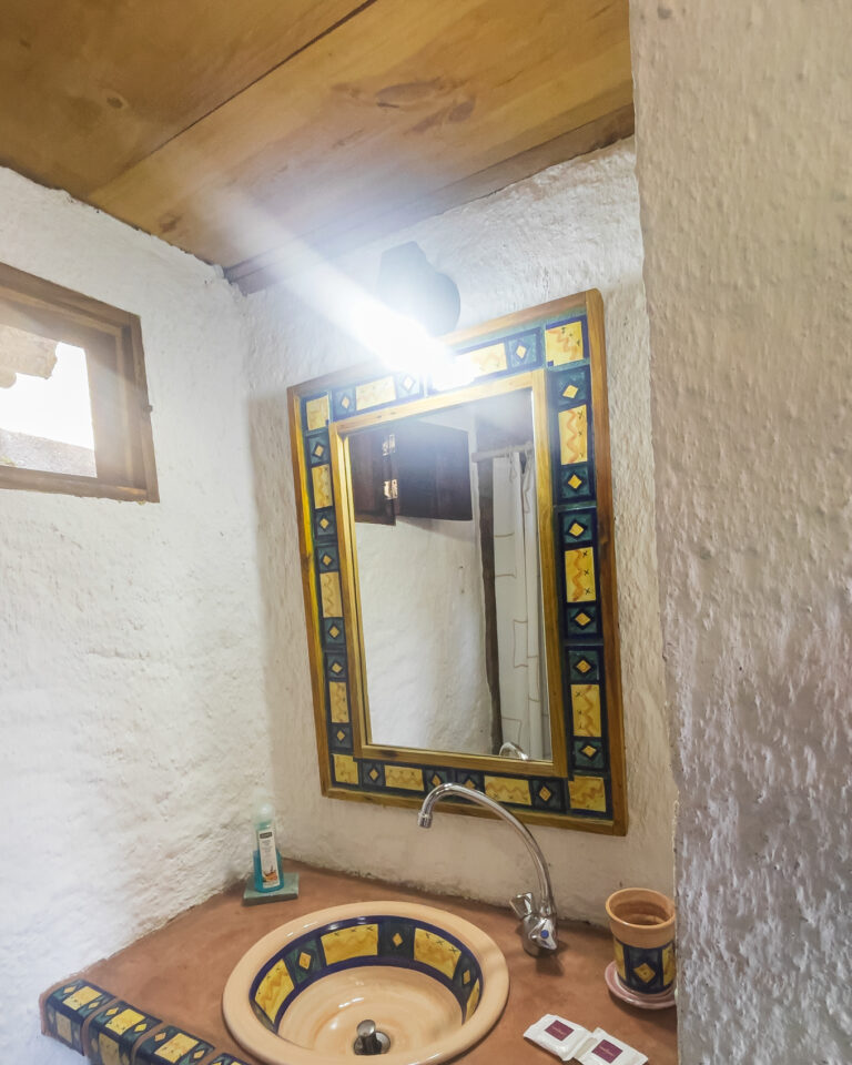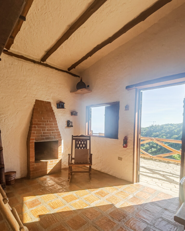 La cabaña incluye nevera ejecutiva, WiFi, lencería, agua caliente, mesa comedor, hamaca, mecedora y chimenea. En su exterior, diferentes áreas sociales dispuestas a lo largo del corredor permiten disfrutar de la vista al mar Caribe y la montaña: comedor al aire libre, bancos con sombra, sillas con mesa y otros espacios para descansar, leer o simplemente contemplar.